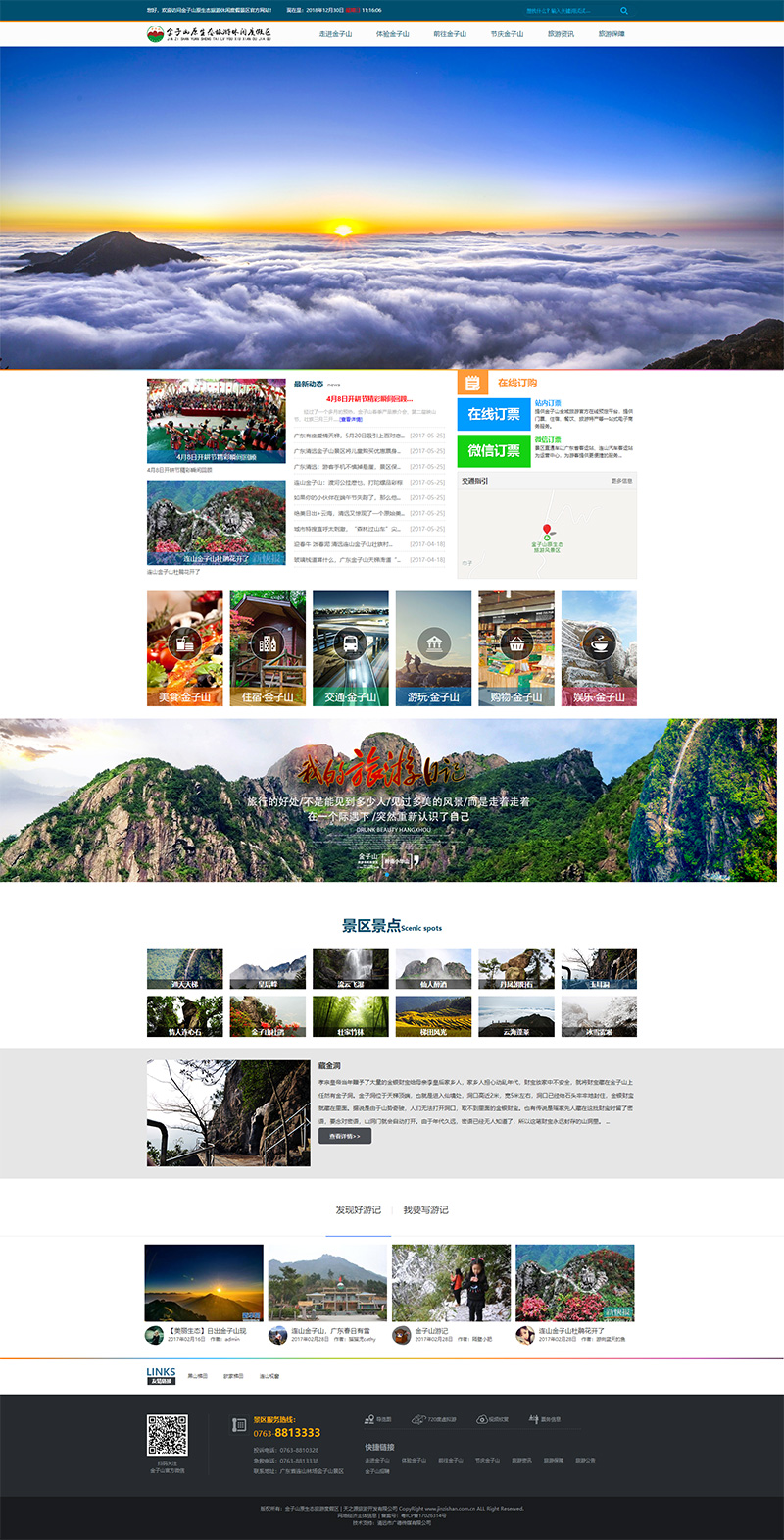 2018年公司真的好忙,每個伙伴都是忙碌著的狀態,2018年,公司保持著高速發展,新上線了超100個全新創意官網,在這里就不一一列舉了。金子山風景區官網即將上線,我們為其完全重構了官網策劃,創意設計,文案組成,服務器也更新為阿里云,新增了小程序購票功能!期待…。舊網站: