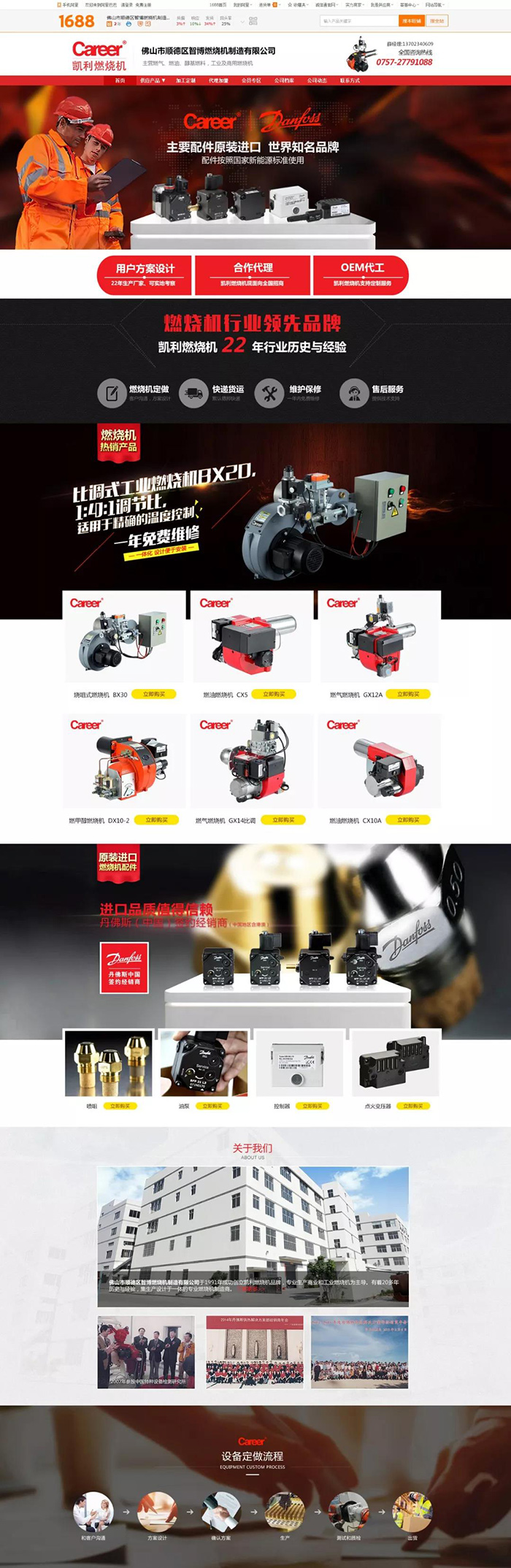 佛山市順德區智博燃燒機制造有限公司,丹佛斯(中國)簽約經銷商,旗下擁有Career(凱利)燃燒器產品品牌,Career(凱利)燃燒器屬港商投資的專業燃燒機,是一家有著19多年歷史的集生產設計于一體的專業化燃燒器制造商,在低排放燃燒技術領域有著豐富的經驗。在19多年的時間里, Career(凱利)生產各種燃油、燃氣燃燒器,其技術水平處于領先地位,產品行銷中國、香港、越南、馬來西亞、俄羅斯、巴基斯坦、南美及中東國家,為世界各地的用戶提一流的產品,一流的品質,一流的服務。